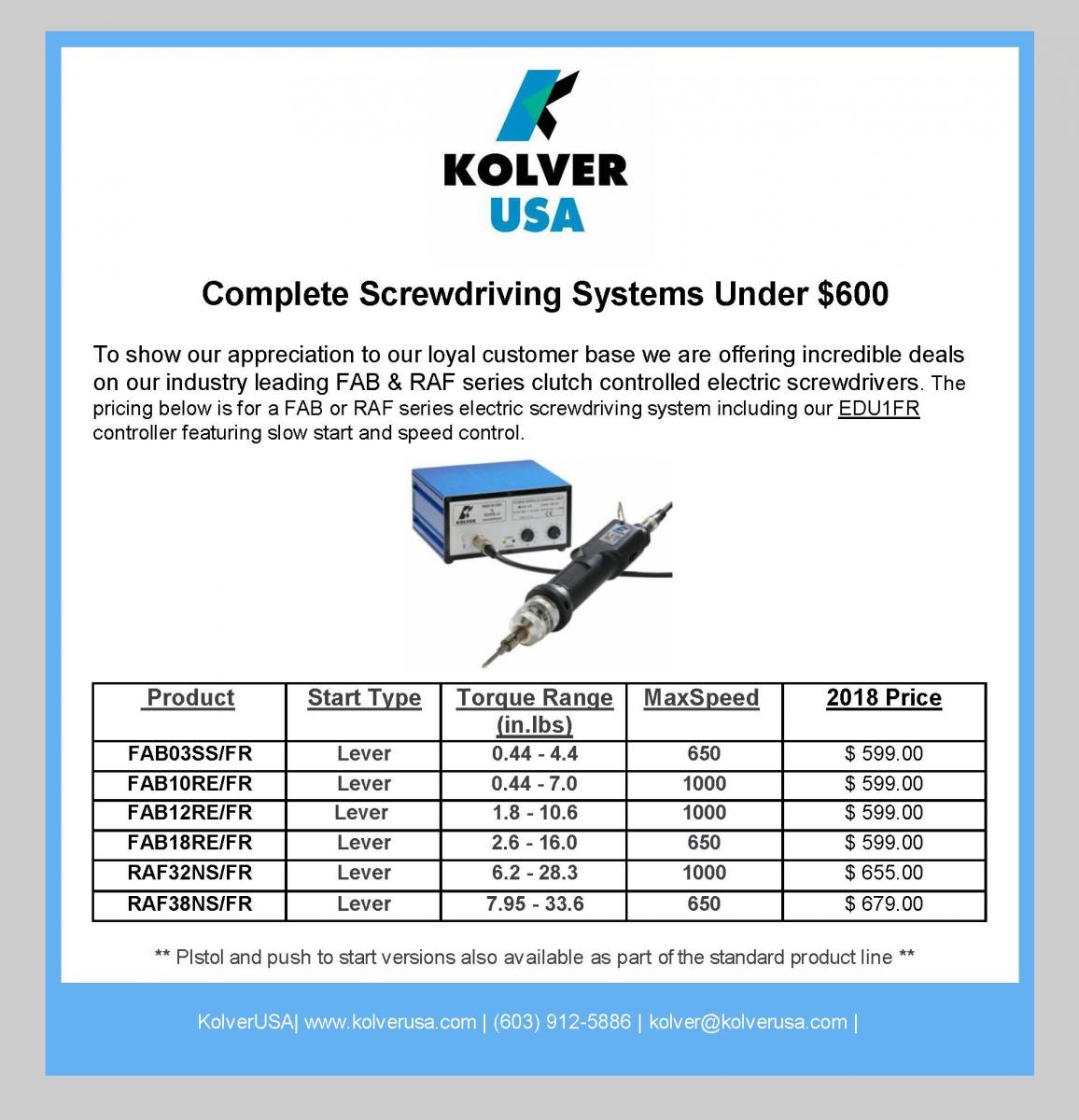 We will be glad to assist you with your application on any of Kolver's Fastening Equipment!